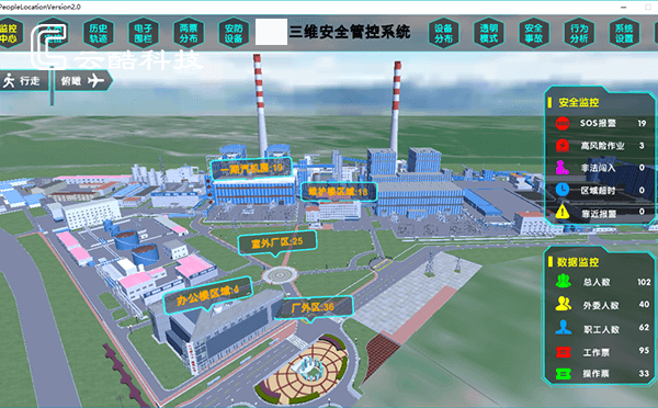 云酷科技結合集團安全需求現狀,建設人員定位管控系統,通過構建全廠1:1等比例三維模型和部署UWB高精度定位設備,實現人、車實時位置監控;通過集成電廠各相關業務系統,實現安全數據的協同聯動;通過在集團側部署智慧安全管控平臺,為集團提供安全監控及大數據分析工具。